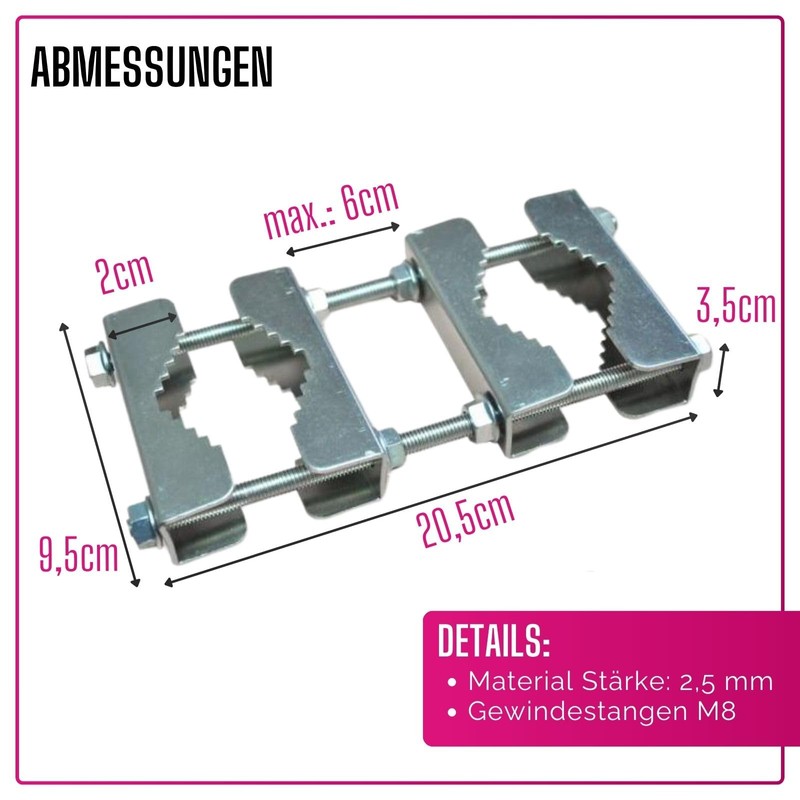 Erwin Weiß GmbH 2 x Double Pipe Clamp Steel I Mounting Clamp for Pipes up to 60 mm Diameter I Max. 6 cm Pipe Distance I Pipe Clamp for Mast Bracket I Mast Clamp with Threaded Rod M8