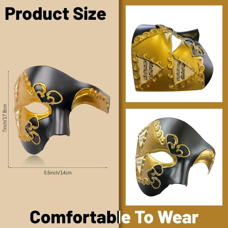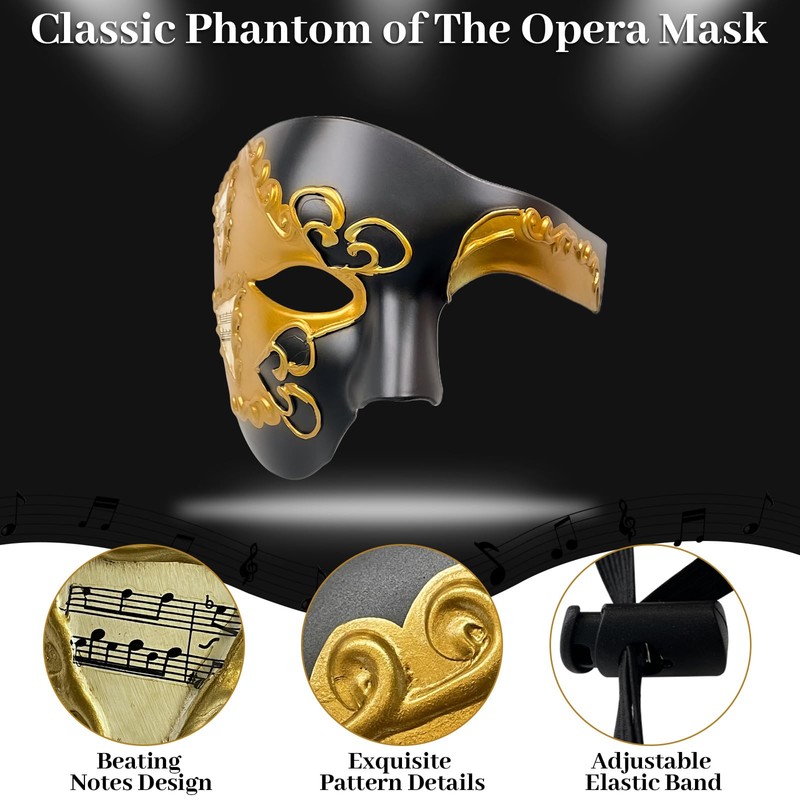 - Retro Half-face Mask Design: Half face Phantom mask unique retro half-face design, exquisite pattern details and beating notes as if in a musical, phantom of the Opera mask intertwined with the mystery will give you an elegant and romantic personality charm, attracting the attention of all people.