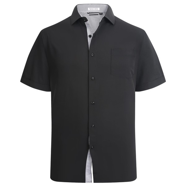 Esabel.C Mens Short Sleeve Dress Shirts 4-Way Stretch Regular Fit Stretch Wrinkle-Free Casual Button Down Shirts Black XL