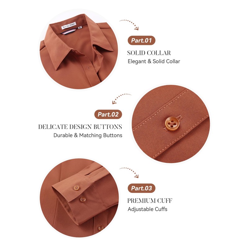 • Materia: Our button down shirts for women are expertly crafted from a high-quality polyester-spandex blend fabric. This fabric offers lightweight and comfort, ensuring a pleasant wearing experience.