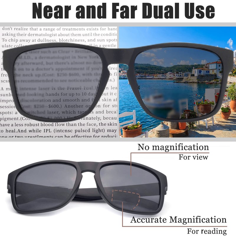 - Bifocales casi invisibles sin línea: lentes de sol regulares en la parte superior con tu elección de potencias ópticas casi invisibles en la parte inferior, perfectos para lectura al aire última intervensión y visualización a distancia. Ya no tendrás que llevar varios pares de marcos de anteojos