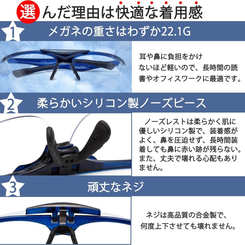 ESAVIA Magnifying Glasses, Loupe, Flip Up Magnifier, 1.0-3.0x Glasses, Blue Light Cut, Magnifying Glasses, Bifocal Use, Quiet Magnifying Glasses, Magnifying Glasses, Magnifying Glasses, Magnifying