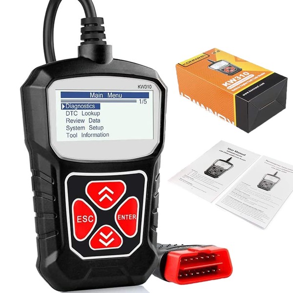 - 【Múltiples funciones】El escáner de código de barras KW310 es una herramienta profesional de diagnóstico de luz de verificación del motor. Además de la función normal de lectura/borrado de códigos de falla del motor, también admite datos en tiempo real, cuadros congelados, listo para I/M, prueba de O2, encendido. monitor de tablero