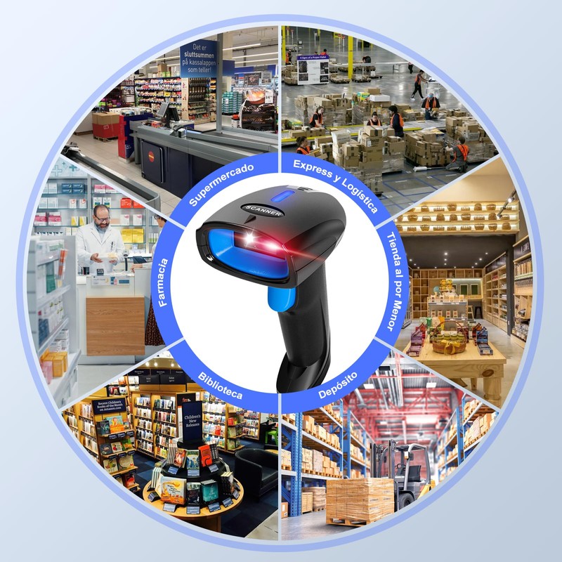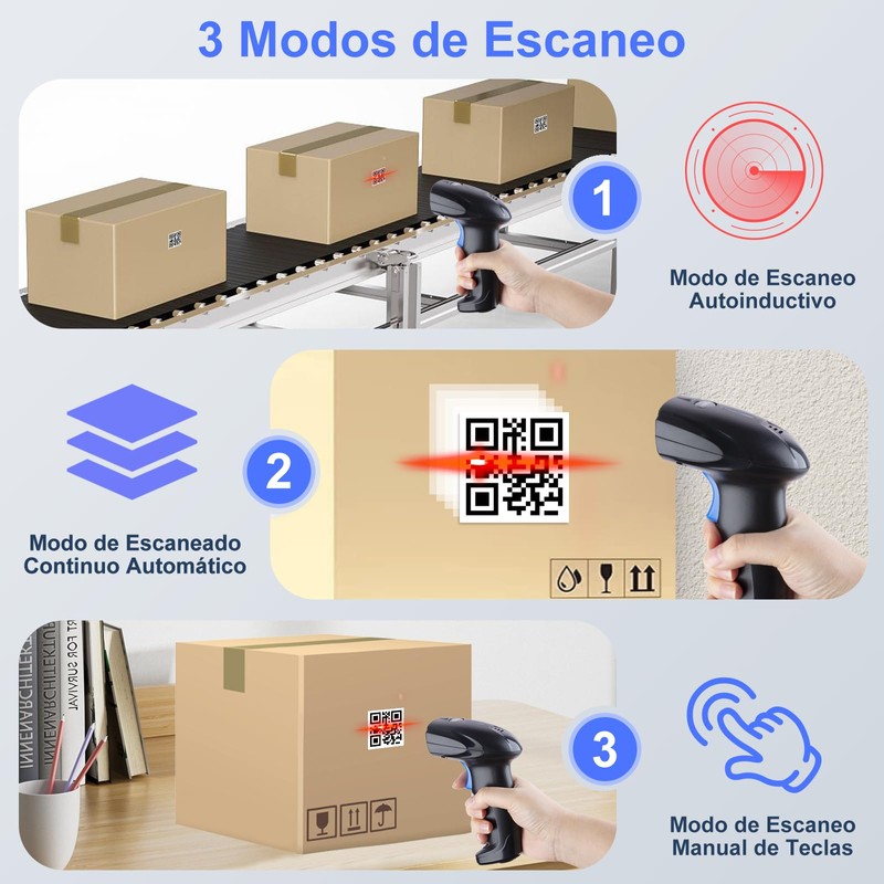 • ✅Conexiones 3 en 1: Escáner de código de barras inalámbrico 1D 2D puede funcionar con bluetooth, inalámbrico 2.4G y con cable USB. (No es necesario instalar ninguna aplicación). Lector codigo de barras se puede conectar con una variedad de dispositivos, como teléfonos celulares, computadoras y tableta. También es compatible con varios sistemas operativos, como Windows/Android/iOS. Ampliamente utilizado en supermercados, centros comerciales, industria postal, logística e instituciones médicas.