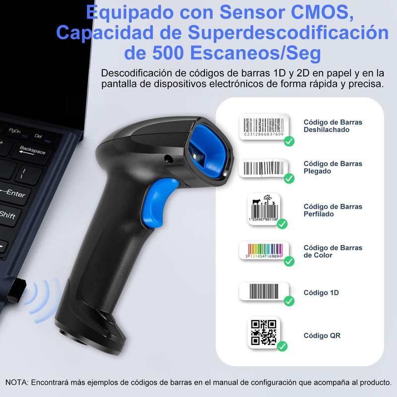 • ✅Escáner de Código de Barras 2D Actualizado: Equipado con una velocidad de lectura rápida y precisa, capacidad de súper decodificación de CPU de 32 bits que la velocidad puede alcanzar hasta 500/seg y sensor CMOS actualizado, el escáner de código de barras puede capturar instantáneamente 1D/2D (QR/PDF417/Matriz de datos, etc.) códigos de barras de papel y pantalla. También puede leer incluso códigos de barras deformados, es decir, códigos de barras borrosos, dañados, borrosos, reflectantes, etc.