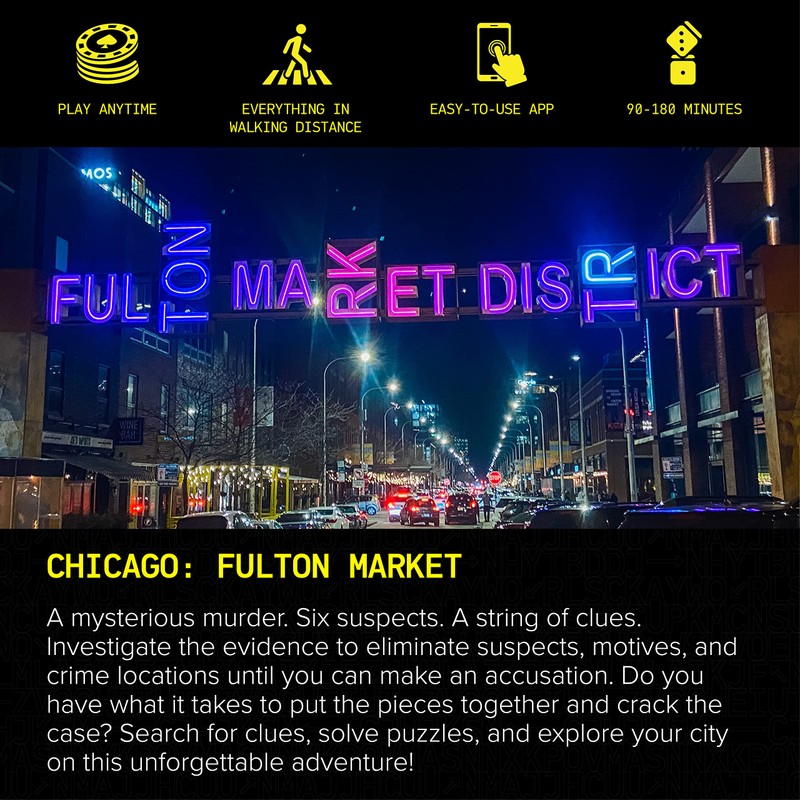 Escapely Adventure Box - Fulton Market, Chicago - Multi-Player Mystery Escape Room Hunt - Adult and Family Interactive Puzzle Game for Your City