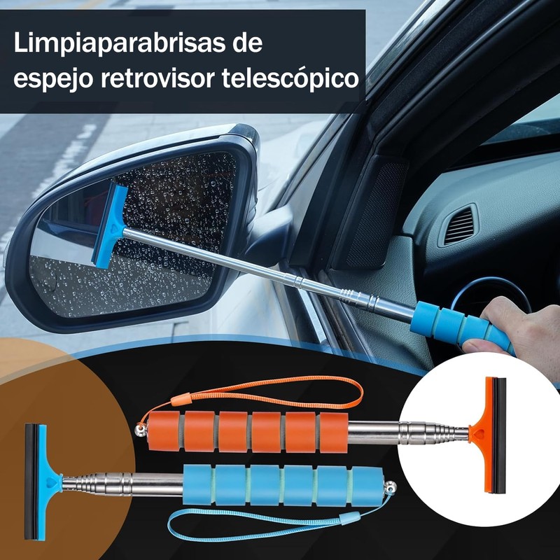 - ¿Conducción segura: ¿ a menudo tienes problemas? Debido a los días brumosos o lluviosos, las ventanas y los espejos retrovisores pueden producir un poco de niebla de agua, lo que afecta gravemente la visión y la seguridad de la conducción. este limpiaparabrisas de espejo lateral de automóvil mini telescópico es su buen ayudante para limpiar rápidamente el agua acumulada en las ventanas y es fácil de operar para ayudarle a salir Con seguridad a la carretera y acompañarle en cada viaje.