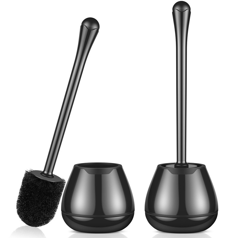 Escobilla y soporte para inodoro, paquete de 2 cepillos y soporte con mango largo, soporte de plástico fácil de ocultar, a prueba de goteo, fácil de montar, limpieza profunda