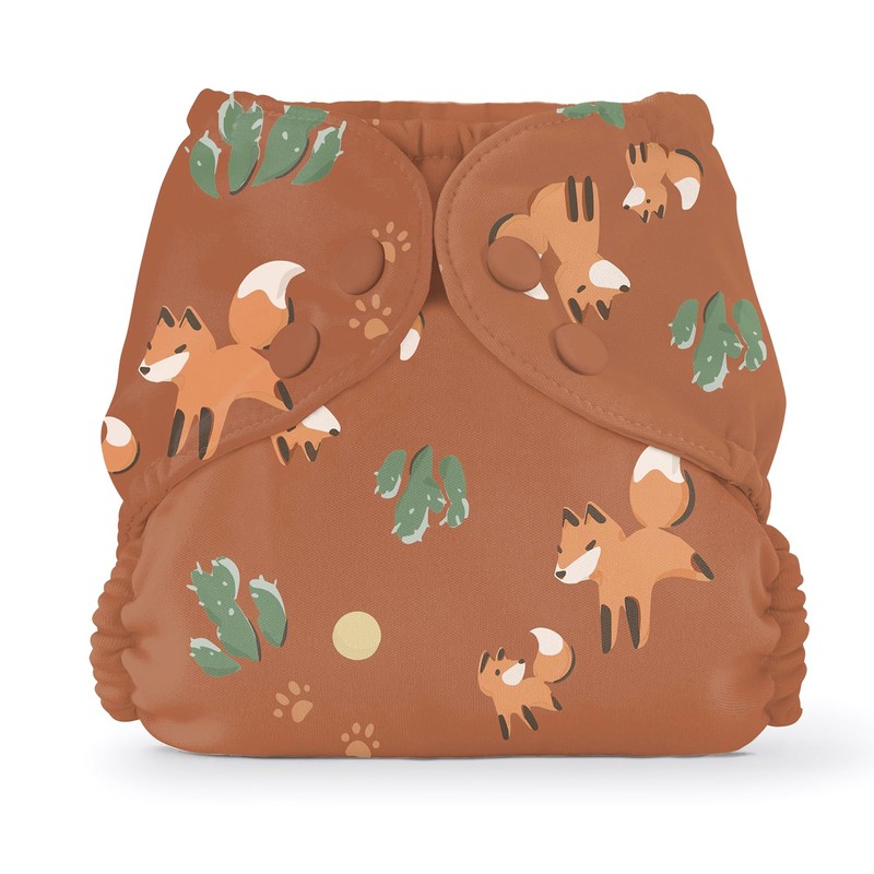 Esembly Cloth Diaper Cover - Reusable Swim Diaper, Waterproof, Breathable - Adjustable Outer Layer Over Absorbent Inner for Blowout Protection - Foxes, Size 1 (7-17lbs)