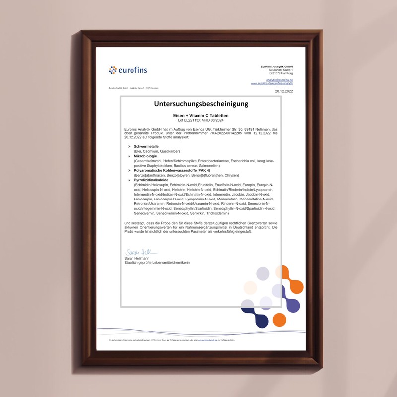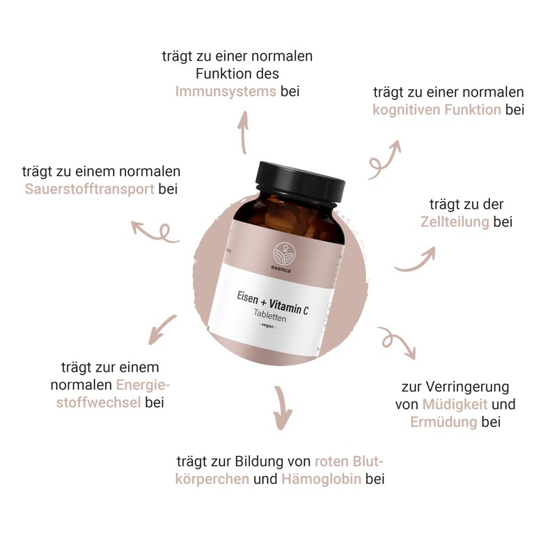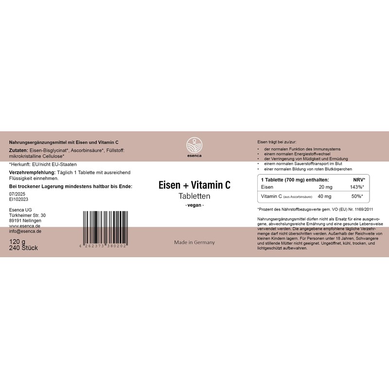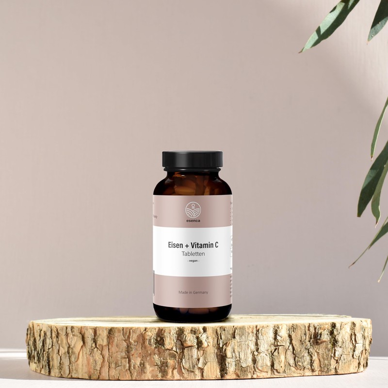Esenca Iron Tablets with 40 mg Natural Vitamin C - Vegan & Laboratory Tested