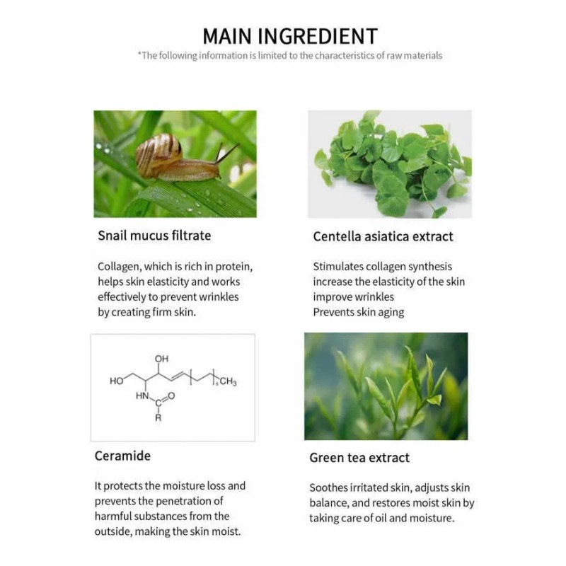 Esta esencia facial combina el poder regenerador de la baba de caracol con las propiedades hidratantes y protectoras de la ceramida. Juntas, estas poderosas ingredientes restauran la piel dañada, mejoran la elasticidad y fortalecen la barrera cutánea para una piel más saludable y luminosa.