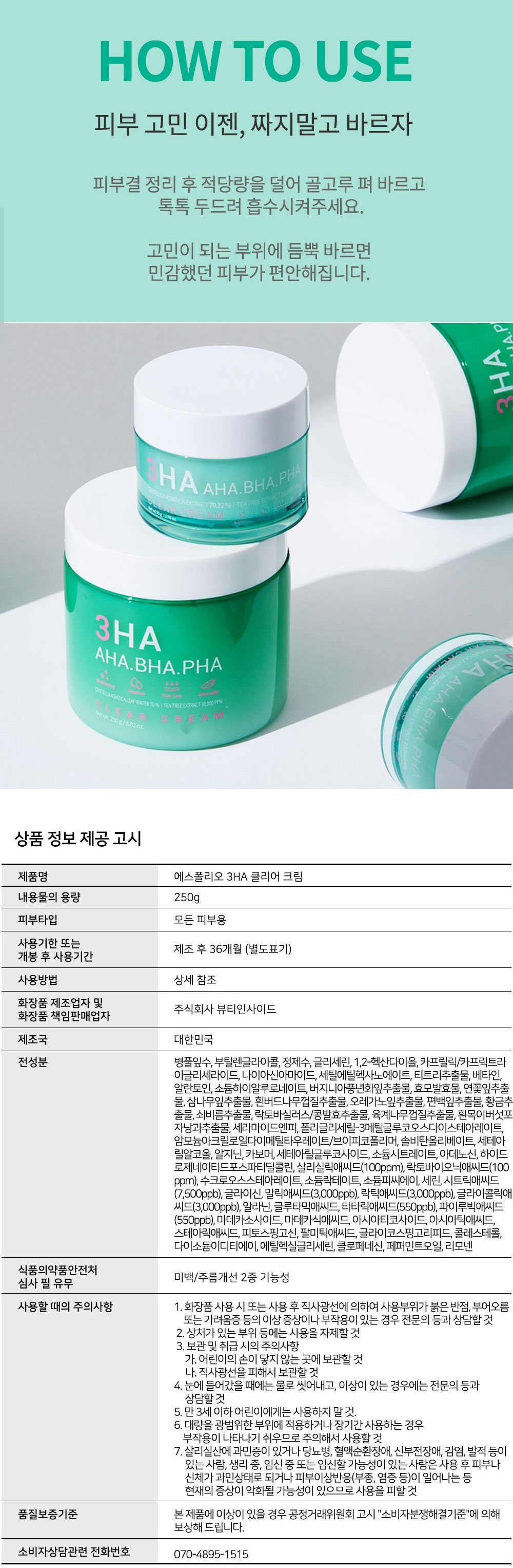 (esfolio)트러블종결크림 1등최대용량 3HA 클리어 진정수분 대용량크림 250g (진정미스트 증정)