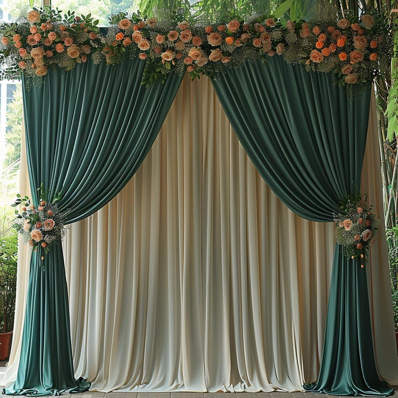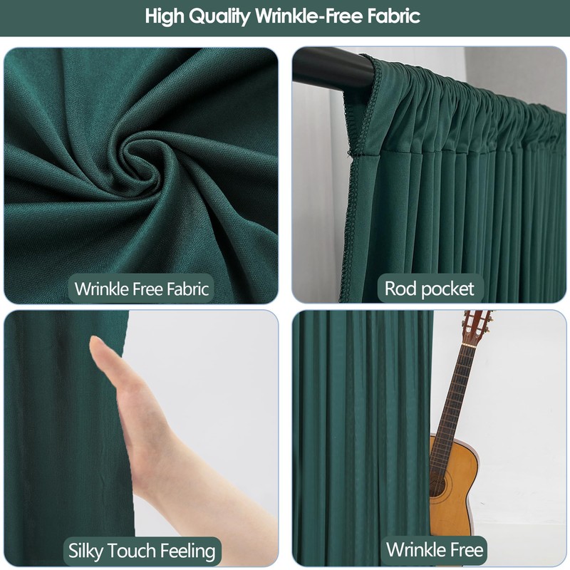 - High-Quality Wrinkle-Free Fabric —— Crafted from premium 100% high-quality polyester fabric, this hunter green wedding backdrop offers a silky smooth texture, and an irresistibly soft touch akin to milk. The backdrop Curtains for wedding droops naturally and the texture is very good, will make your wedding more elegant