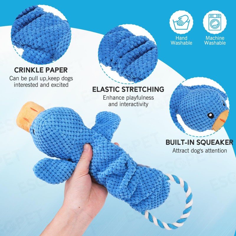 ESGPET Squeaky Dog Toys, Pull Interactive Plush Chew Cute Toy with Crinkle Paper for Puppies Small Medium Large Dogs,Great for Tug of War and Teeth Cleaning (Blue)
