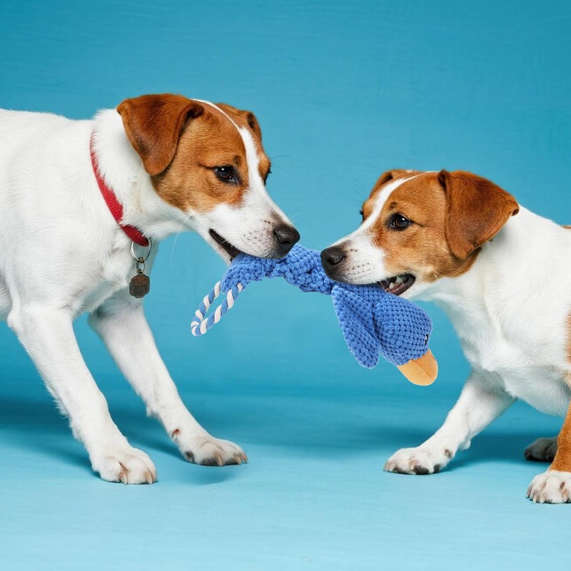 - Dog Chew Toy: This stuffed dog toy is made of soft and durable cotton, which has thicker fabric than any stuffed dog toy. Soft cotton provides a comfortable touch for dogs, and will not hurt gums and mouth, nor will it be easily broken. The rope design encourages you to interact with your furry friends