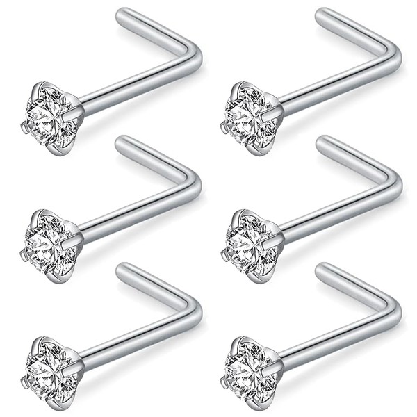 - Set of 6 titanium nose piercing studs. These nose studs for women size: bar thickness: 20 gauge (1.0 mm), pin length: 7 mm, cubic zirconia: 3 mm. These small silver nose studs can be worn together as a daily game or as a birthday gift for men, ladies, friends, sisters, daughters and granddaughters. Perfect for graduation gift, birthday gift, Valentine's Day gift, 10th birthday gift, 20th birthday gift, Thanksgiving gift, Christmas gift.