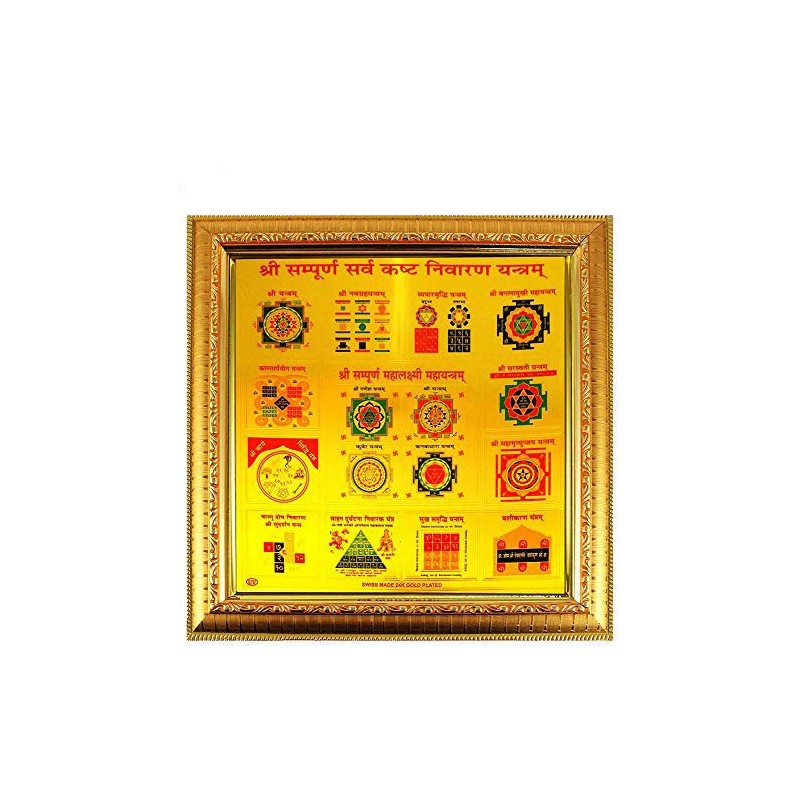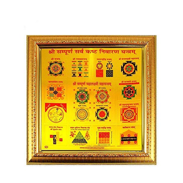 eshoppee Diwali Yantra shri Shree sampoorn sampurna sarv kasht nivaran, sarva kashta nivaran Yantra Size 27 x 27 cm. (sarv kasht nivaran, Golden Frame) Diwali Gift