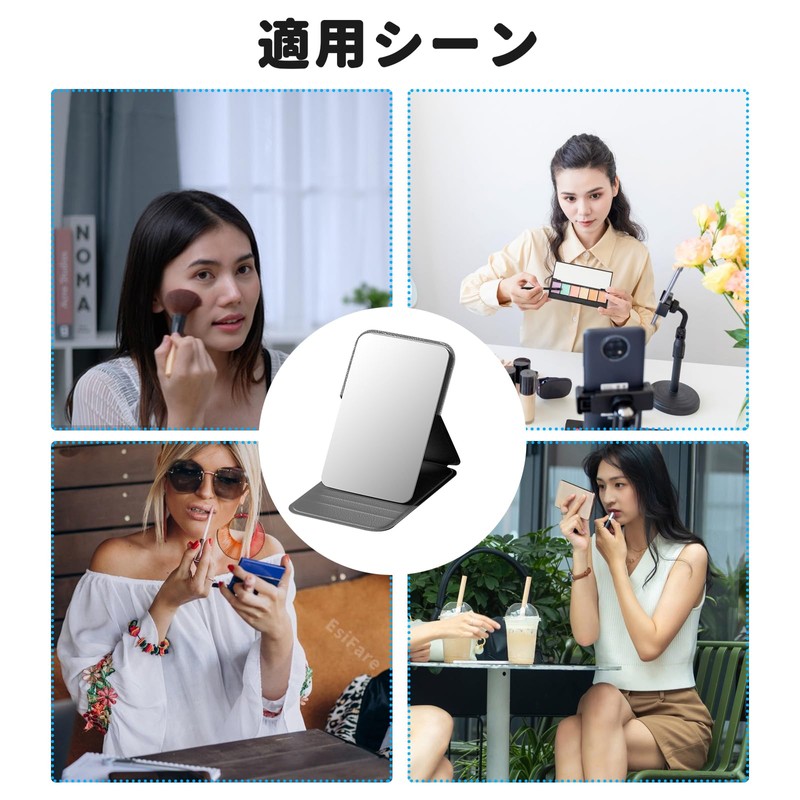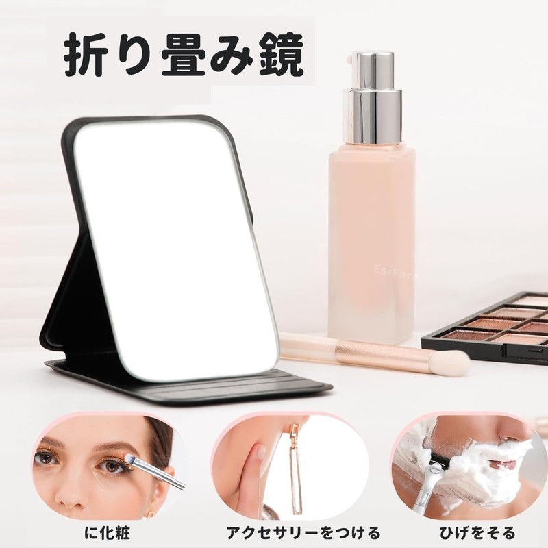 EsiFare 化粧鏡 手鏡 鏡 小さい 10.5*7cm 折りたたみミラー 卓上ミラー ミラー 角度調節可能 収納便利 スタンド 化粧 メイク鏡 持ち運び ヘアメイク ヘアアレンジ 黒