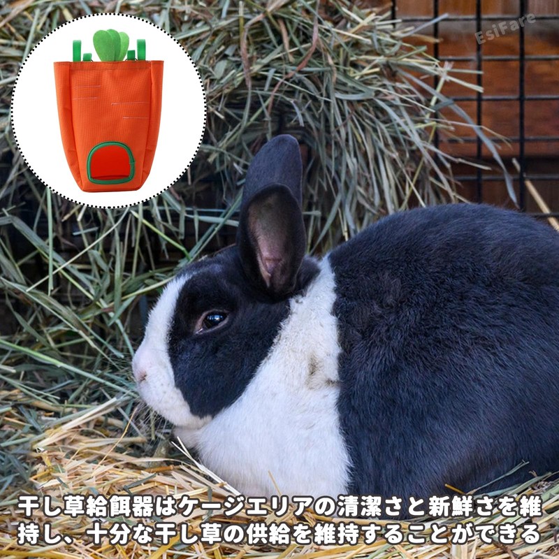 EsiFare Pasture Storage Rabbit, Cute, Fabric Grass Feeder, No Mess, Guinea Pig Food, Hamster, Rabbit, Interior Cage, Washable, Hanging, Small Animal Breeding, Large Capacity
