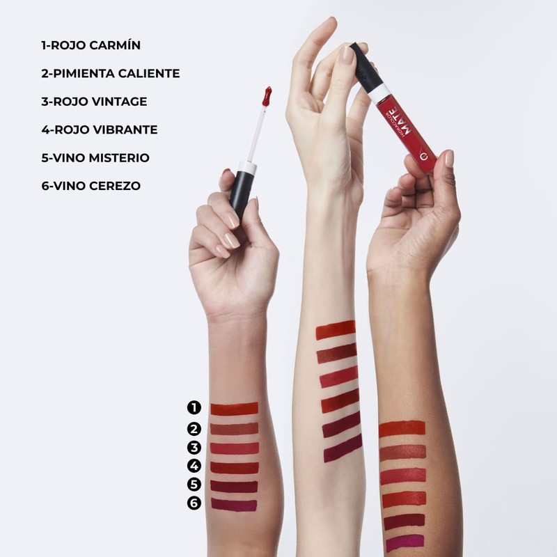 Labial Hidracolor Mate Líquido de larga duración con ácido hialurónico. MATEHYALURONIC X 24H* no transfer** y full hidratación. ¡Todos los mates para todas las mujeres! Acabado: Mate. Capacidad: 6 ml.