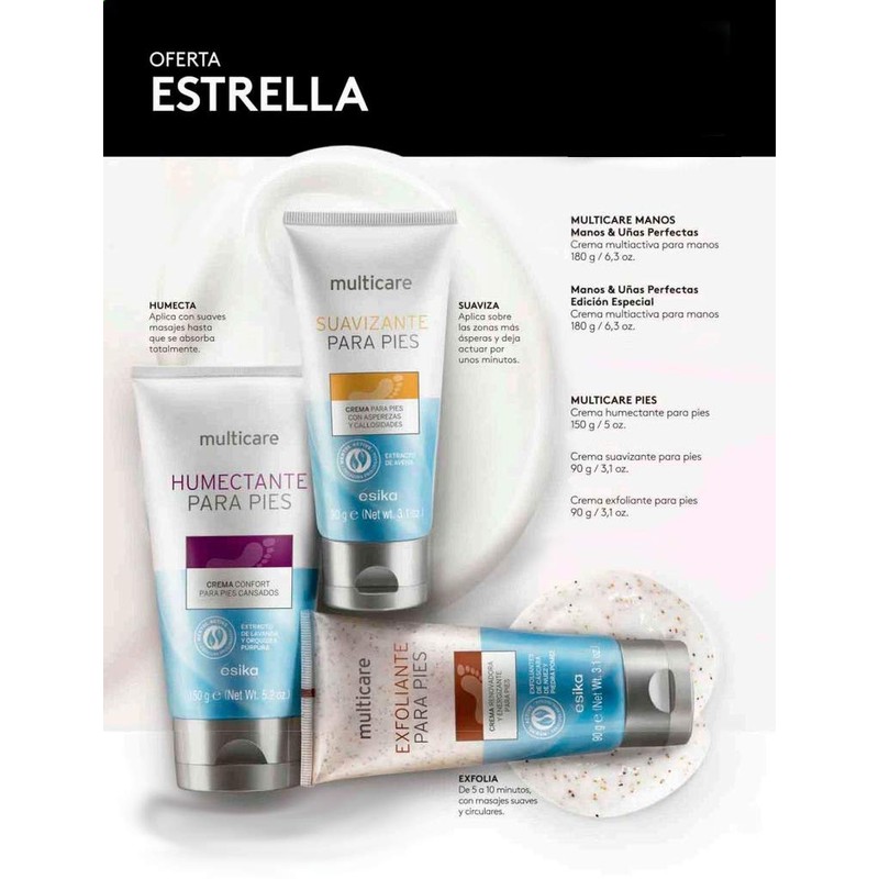 Esika Multicare Exfoliante Para Pies, Suavizante Para Pies y Humectante para Pies