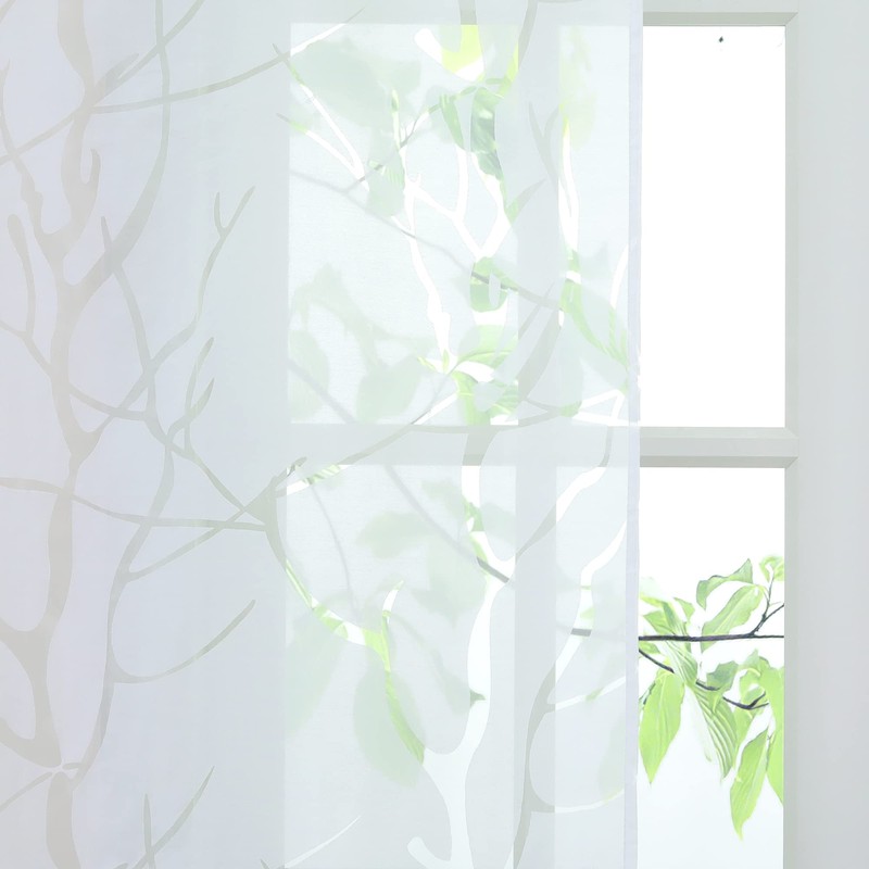 ESLIR Sliding Curtains, Burnout Panel Curtains, Set of 2 Curtains with Velcro Tape, Transparent Curtain, White #3, W x H 57 x 145 cm, Pack of 2