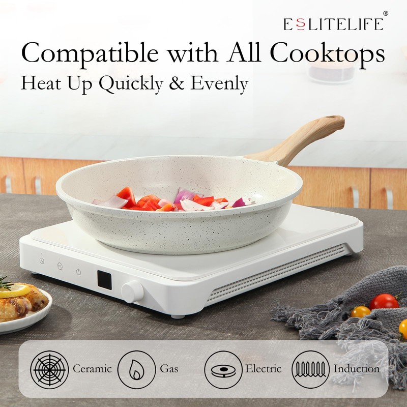 • Non-Toxic Ceramic Coating & Super Easy to Clean - All ESLITE LIFE pan and pot products are free of PTFE & PFOA, SGS approved, requiring less oil or butter for cooking and minimal scrubbing for a spotless clean, giving you a healthier and more enjoyable at-home cooking experience.
