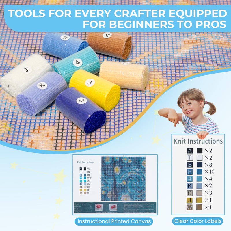 - Easy to Follow Instructions: Our latch hook pillow kits for adults feature a vibrant, pre-printed Starry Sky pattern on the canvas. Clear instructions and color-coded guides make it easy for beginners and children to create a stunning pillowcase