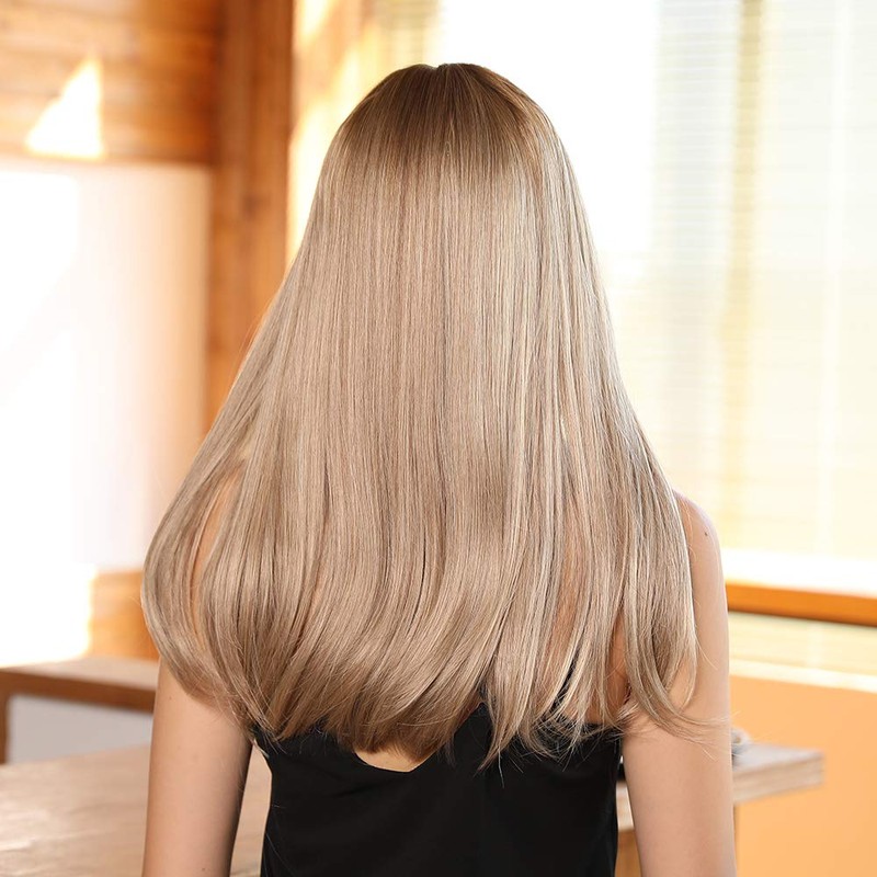 Esmee 24Inch Charming Wig Light Gold Long Wigs for Women Middle Parting Natural Straight Heat Resistant Synthetic Wigs for White Women with Bangs