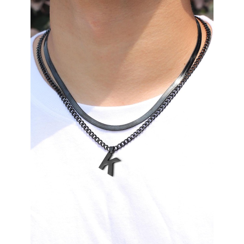 - Men's Necklaces:2 Piece Layered Necklace, Cuban Link Letter Pendant and Herringbone Necklace Set is classic and stylish. You can choose to wear them on their own or layered, both are great choices for making a statement.