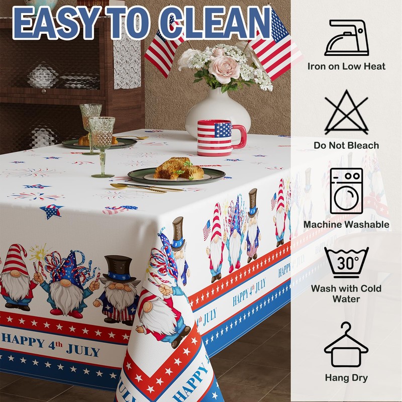 • Anti-Wrinkle & Anti-Shrink: Crafted from premium fabric, our Independence Day table cover offers superior wrinkle and shrink resistance compared to other materials, featuring a folded border hem with fine stitching for an elegant look and secure, thread-free edges.