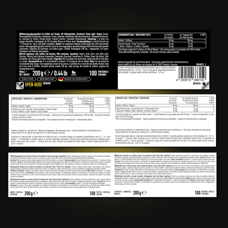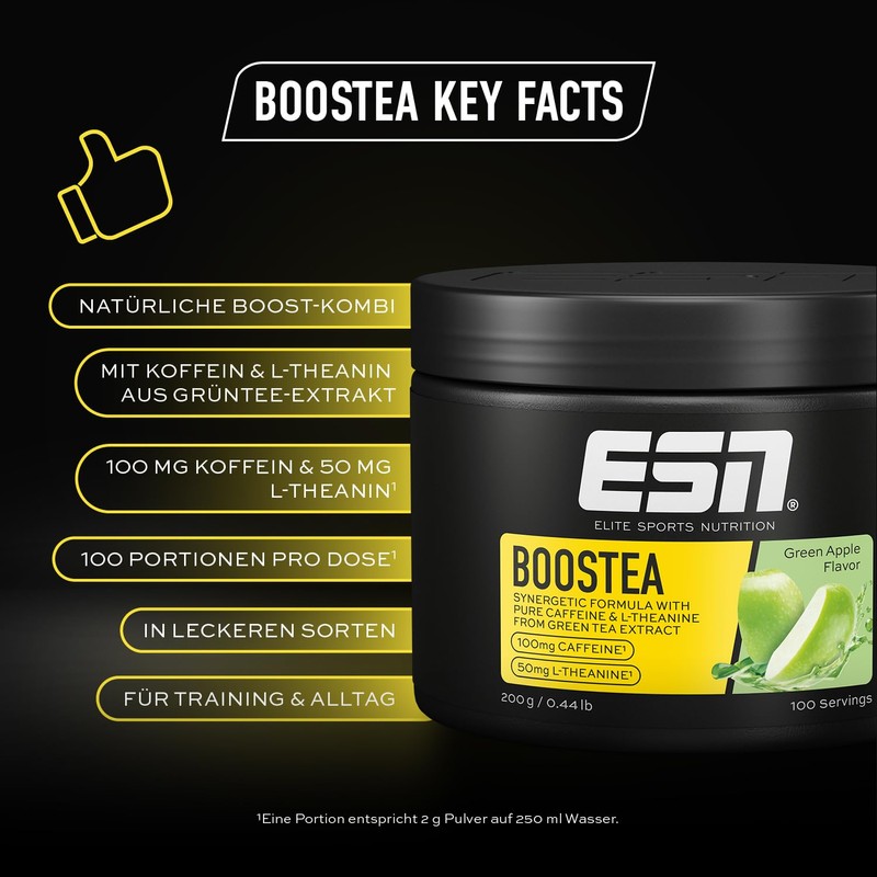 ESN Boostea, Green Apple, 200 g, Booster with Caffeine, L-Theanine and Green Tea Extract, Tested Quality, Made in Germany