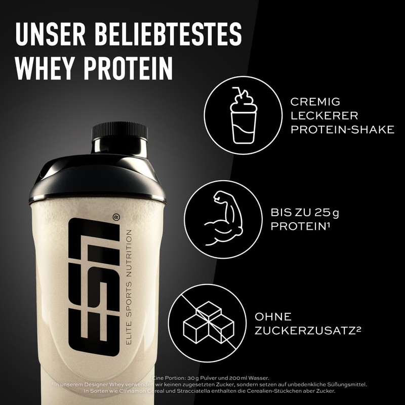 ESN Designer Whey Protein Powder, Natural, 1 kg, up to 23 g Protein per Serving, Ideal for Muscle Building and Maintenance, Made in Germany