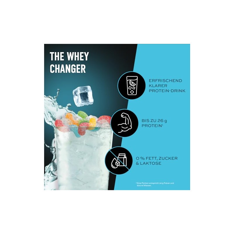 PROTEIN FÜR DEINEN KÖRPER: Mit bis zu 25,5 g reales Protein pro Portion unterstützt unser Clear Whey die Muskelproteinsynthese. Du kannst es ganz einfach mit Creatin Monohydrat mischen und als Pre oder Post Workout Shake trinken