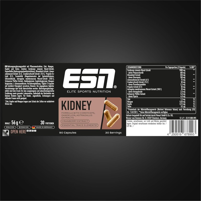 - ESN Kidney: one can contains 90 capsules and provides you with a supply of 30 servings