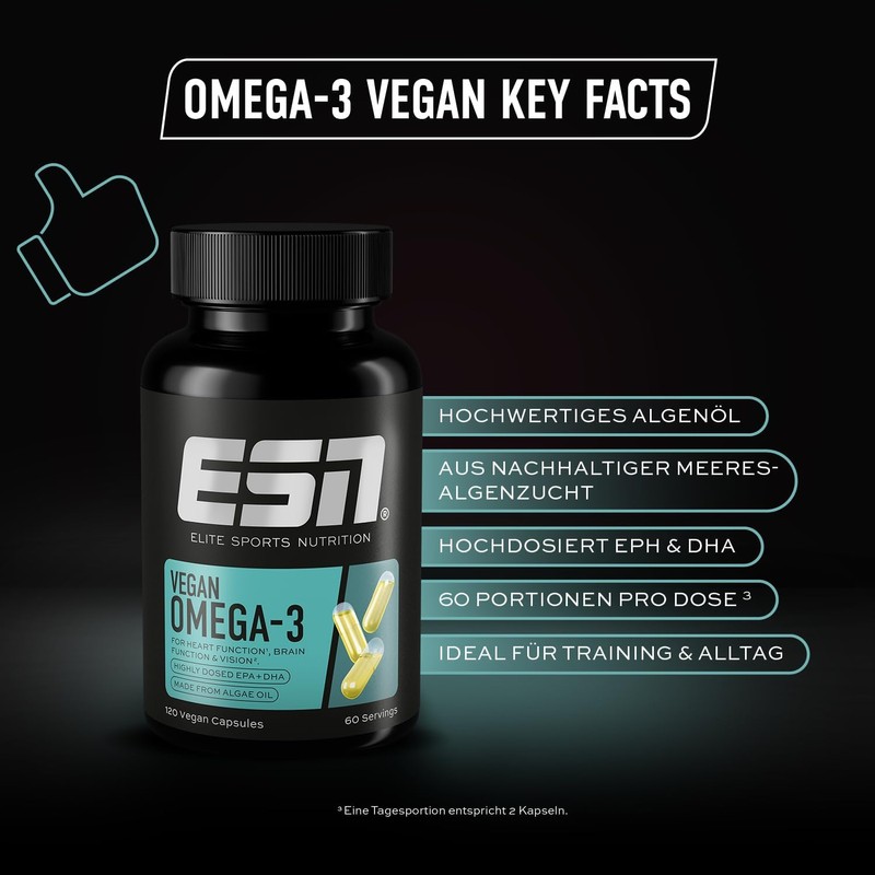 ESN Omega-3 Vegan, 120 Vegan Capsules, High Dose Algae Oil