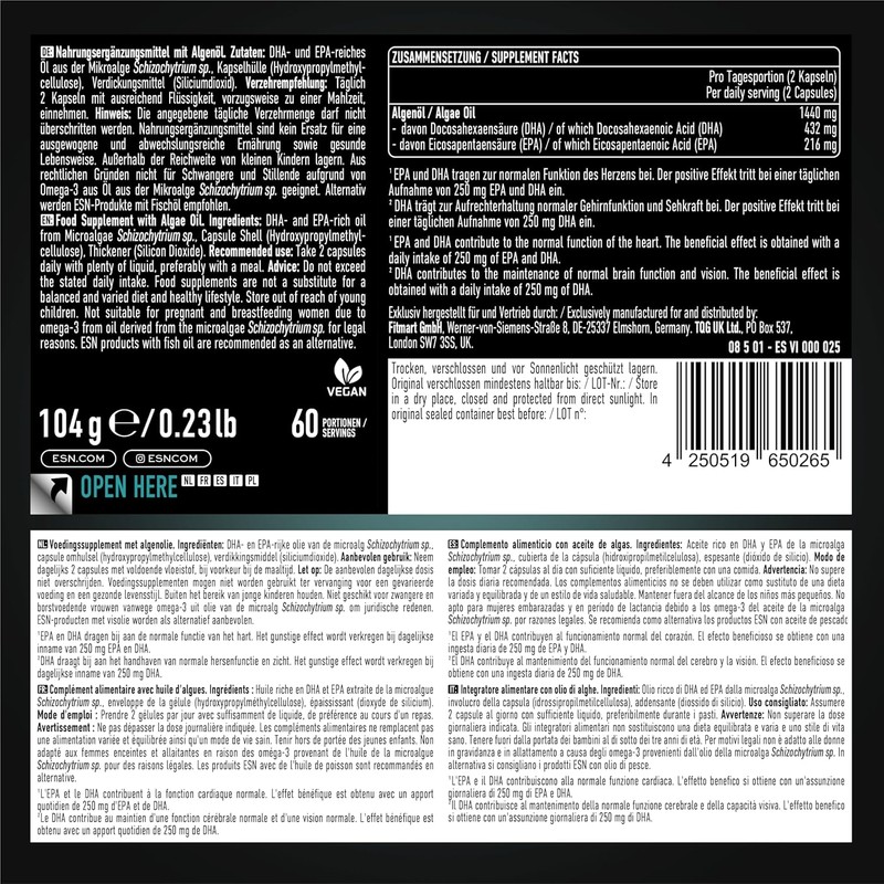 - Production: the ESN Omega 3 vegan capsules are produced in compliance with the strictest quality standards