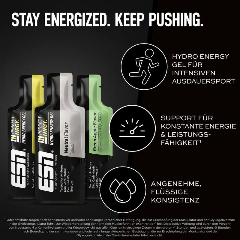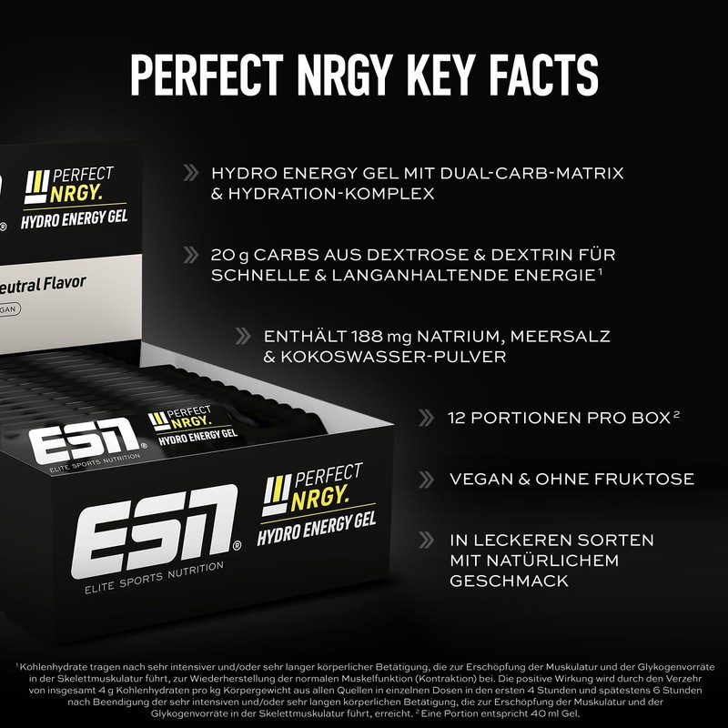 ESN Perfect NRGY, 12 x 40 ml, Neutral, Hydro Energy Gel, Kohlenhydratgel mit Dextrose, Dextrin, Kokoswasser, Natrium und ohne Fruktose