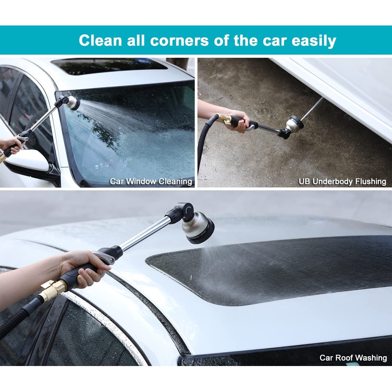 - 【100% HEAVY DUTY METAL】The adjustable garden hose sprayer wand is constructed of zinc alloy, aluminum alloy, and TPR for a tough lightweight and durable that's easy to grip and adjust. Slip resistant handle make this watering wand comfortable to use. Non-corrosive exterior that ensures strength and durability for extended nozzle life. The shock resistant rubberized bezel dial can enhance durability & flexibility and withstand hard impacts & heavy force in daily drops and shocks.