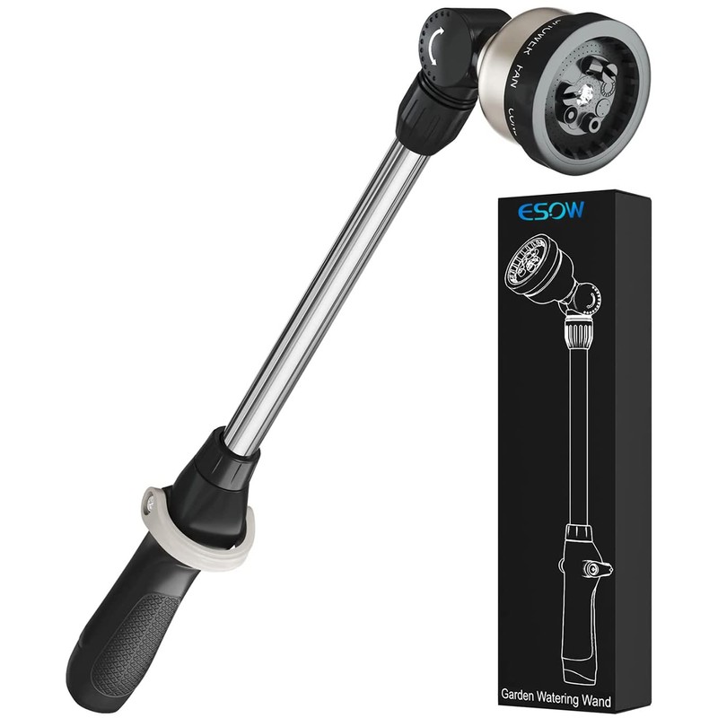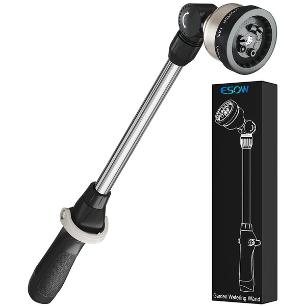 ESOW Garden Hose Wand 16 Inches, Watering Sprayer Wand with 9 Watering Patterns, 180° Adjustable Swivel Head, 100% Heavy Duty Metal Hose Nozzle, Thumb Control On Off Valve