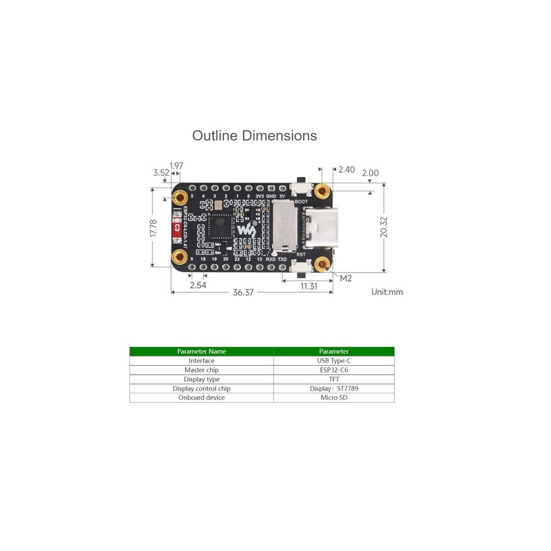 - ESP32-C6-LCD-1.47-M,Integrates LCD display, onboard TF card slot and multiple peripheral interfaces