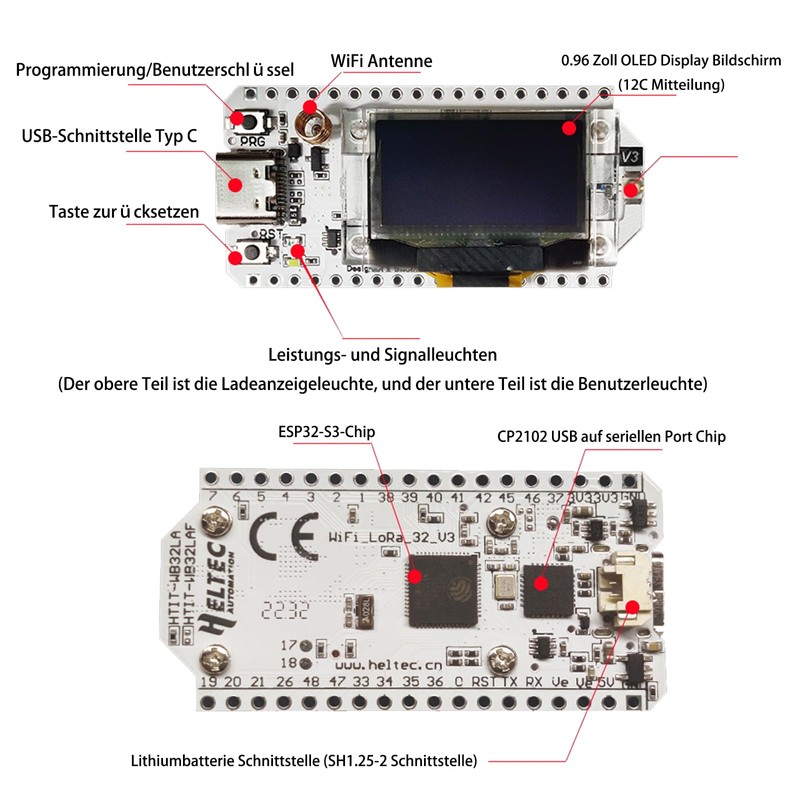 - PERFECT DESIGN Built-in WiFi, LoRa, three Bluetooth network connections, built-in WiFi, dedicated Bluetooth 2.4GHz metal spring antenna, reserved IPEX (U.FL) interface for LoRa use. Built-in CP2102 Type-C to serial port chip with full voltage regulator, ESD protection, short circuit protection, RF shielding and other protective measures.