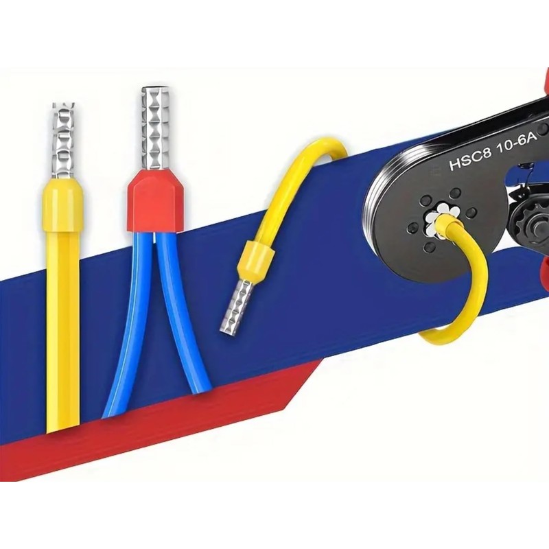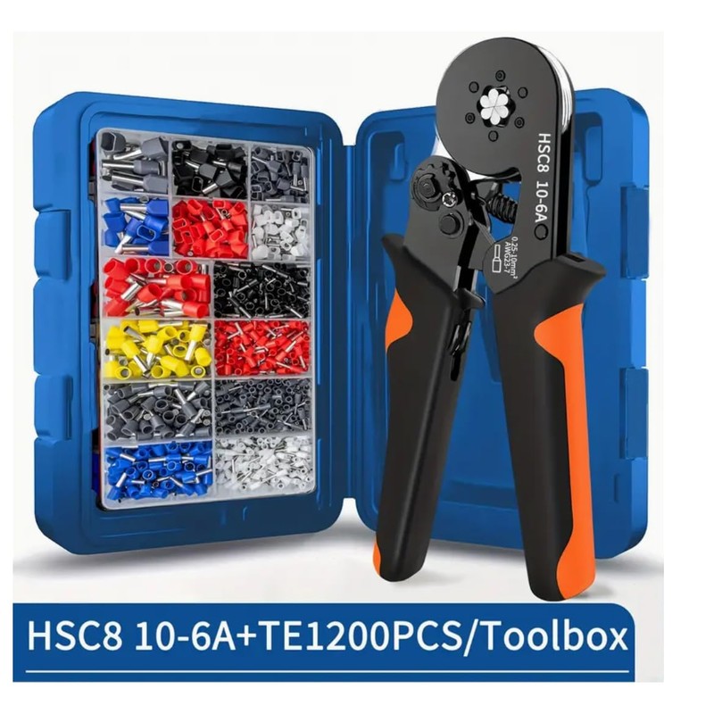 Espectronix HSC8 10-6A Crimping Tool Set, Carbon Steel Handle Set with Terminals, 1200 Pieces, Hex Crimping, Cold Pressed Cable Connectors
