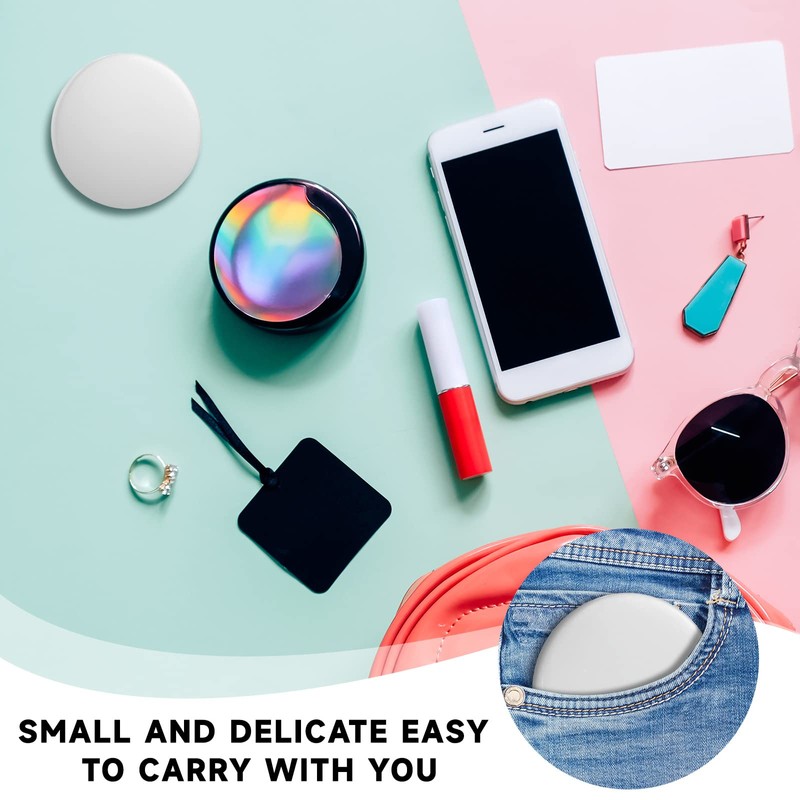 - Tamaño compacto y bonito: cada mini espejo de cristal mide aprox. 7 cm/ 2.76 pulgadas de diámetro, tamaño pequeño y peso ligero, se puede guardar fácilmente en el bolsillo, la cartera, la mochila, etc., conveniente para usar en cualquier momento