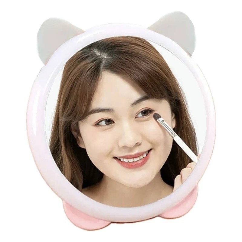 ¡Ilumina tu belleza con el espejo de maquillaje LED con orejas de gato!