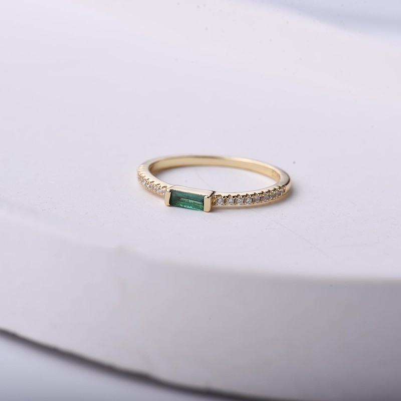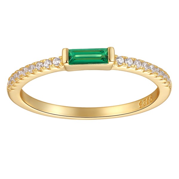 espere Dainty Minimal Emerald Baguette Ring | 18K Gold Plated Emerald Diamond Simulant Stackable Ring | Minimal CZ Anniversary Band Size 4
