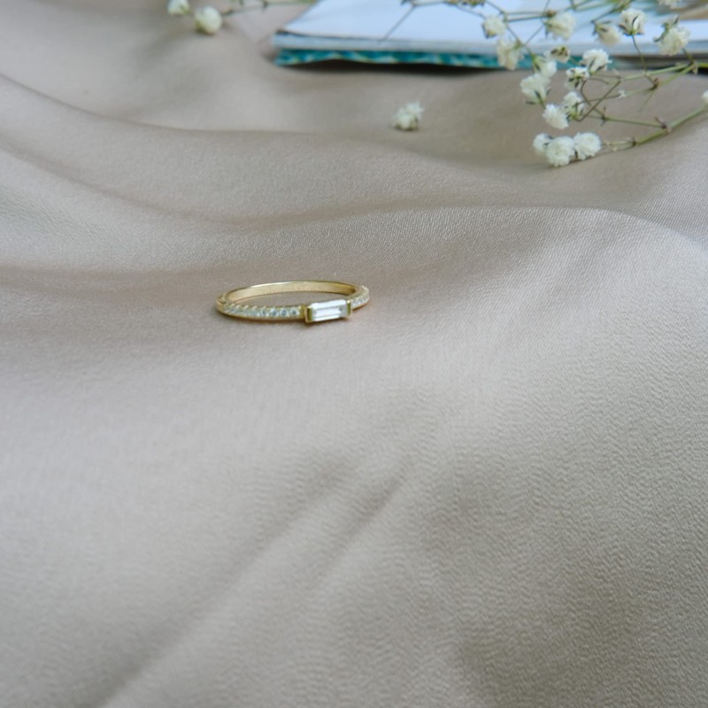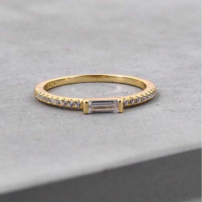 espere Emerald Baguette Ring | 18K Gold Stacking Ring | Minimal CZ Anniversary Band Size 4