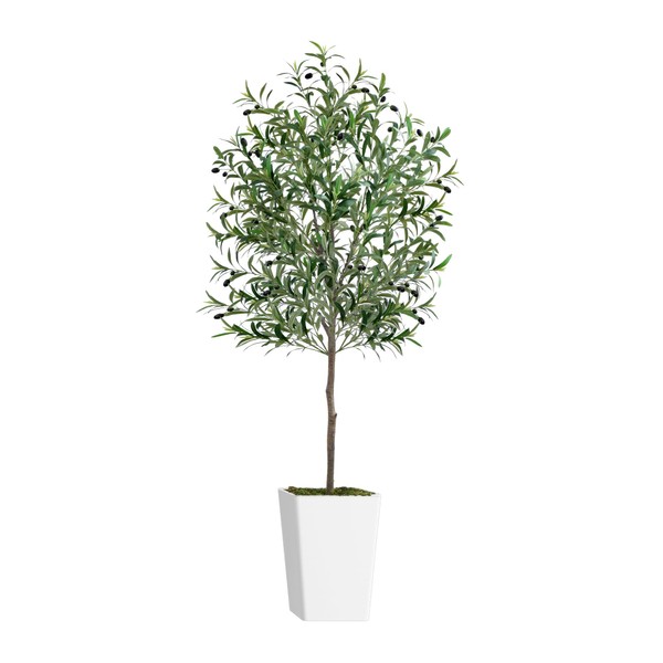 ESPIDOO 6FT Artificial Olive Tree: Modern Silk Plant with White Pot & Moss - Realistic Home Office Decor for Living Room & Bedroom - Easy Assembly & No Watering Needed
