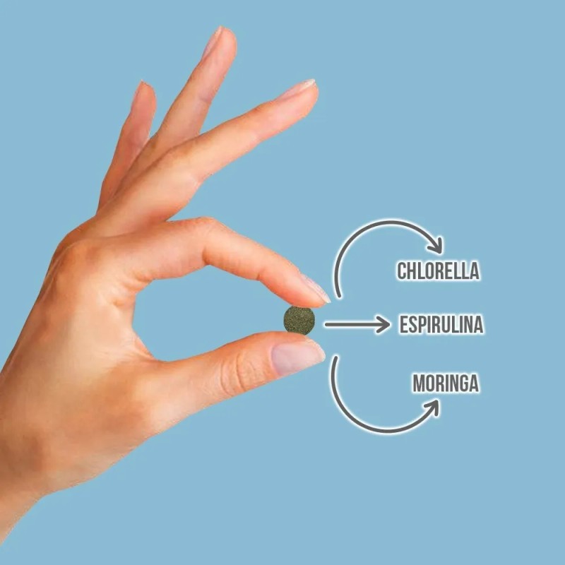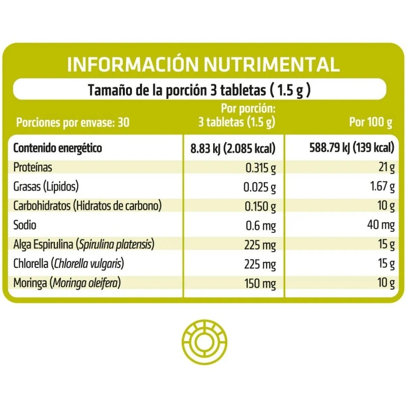 Uso Sugerido: Incorpora nuestro Complejo de Espirulina, Chlorella y Moringa en tu régimen diario con solo una tableta al día, facilitando una absorción óptima y sostenida de sus beneficios.