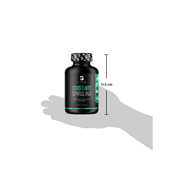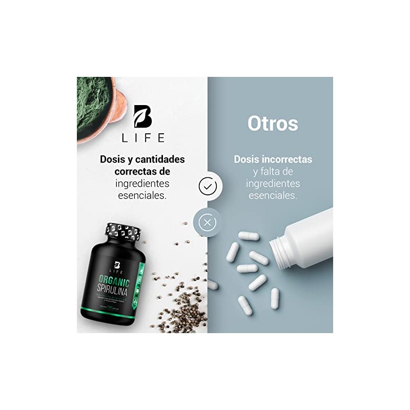 🌟 ⭐ Espirulina Orgánica de 150 Cápsulas 500 mg. Ingredientes naturales: Alga Espirulina. Organic Spirulina B Life. ⭐ 🌟